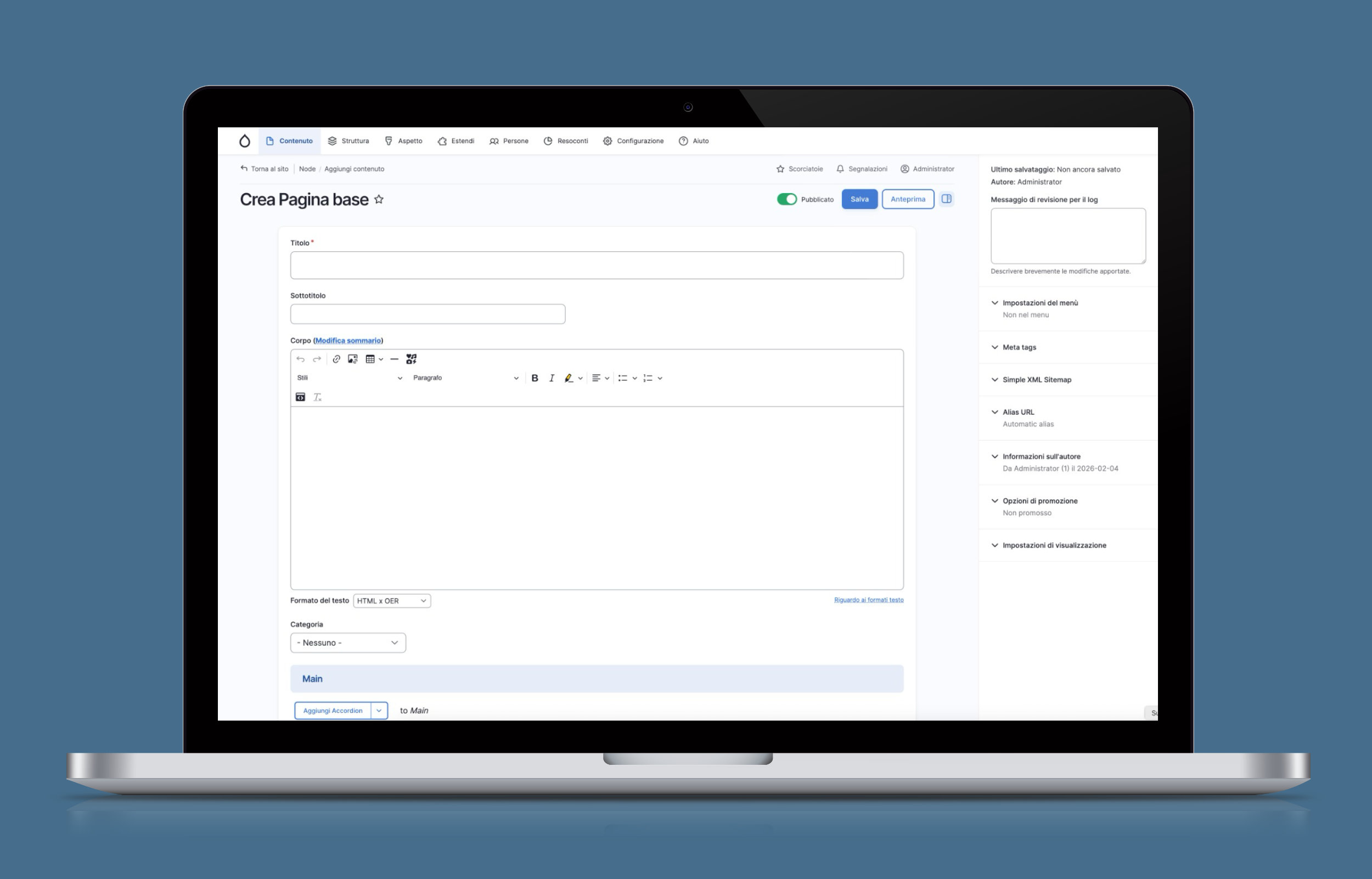 Il nuovo portale nasce su Drupal 11, una piattaforma solida, scalabile e adatta a contesti complessi come quello universitario. La scelta tecnologica non è mai neutra: Drupal consente una gestione avanzata dei contenuti, un controllo puntuale dei permessi e un’architettura modulare capace di evolvere nel tempo senza dover essere ripensata da zero.