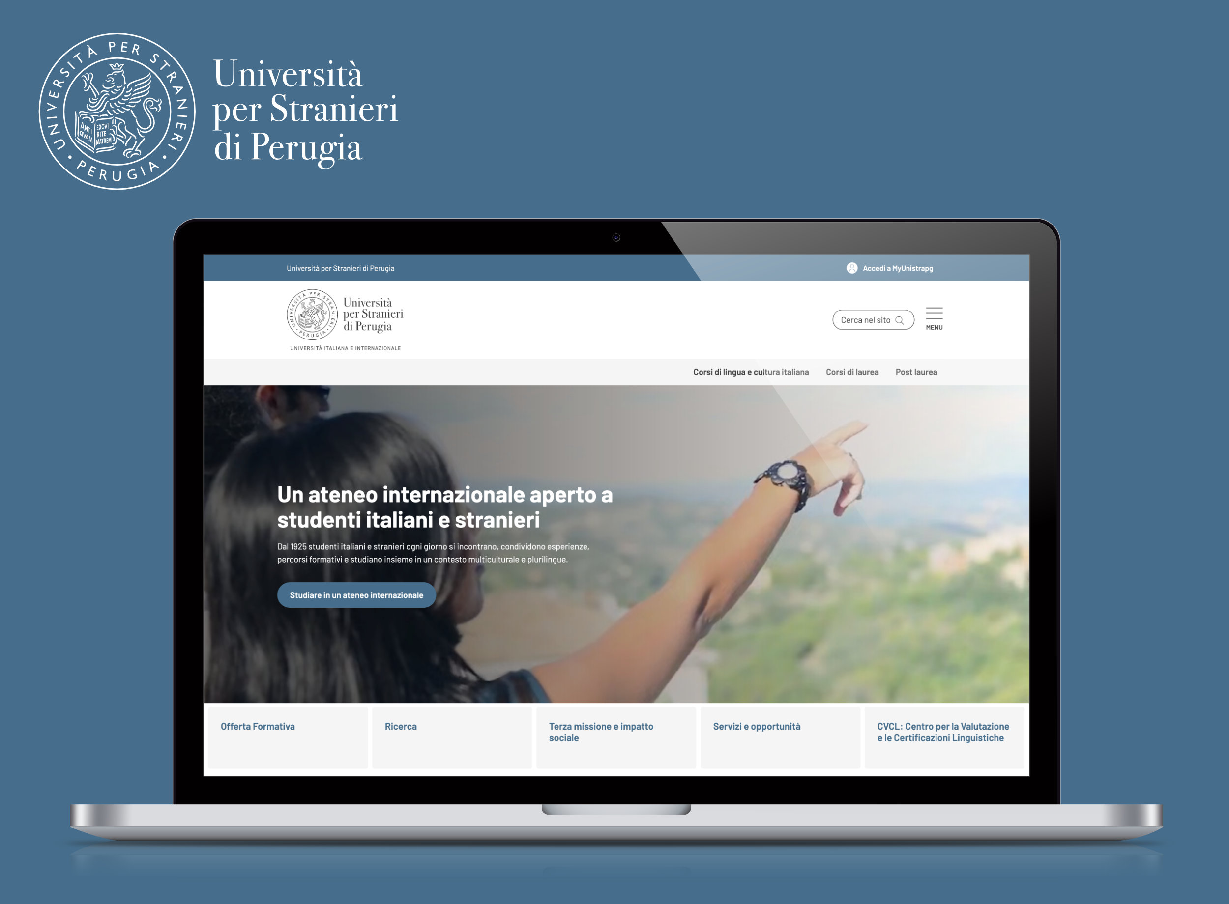 Per l’Università per Stranieri di Perugia abbiamo progettato e realizzato un nuovo portale di Ateneo, pensato per essere uno strumento solido, chiaro e durevole nel tempo.